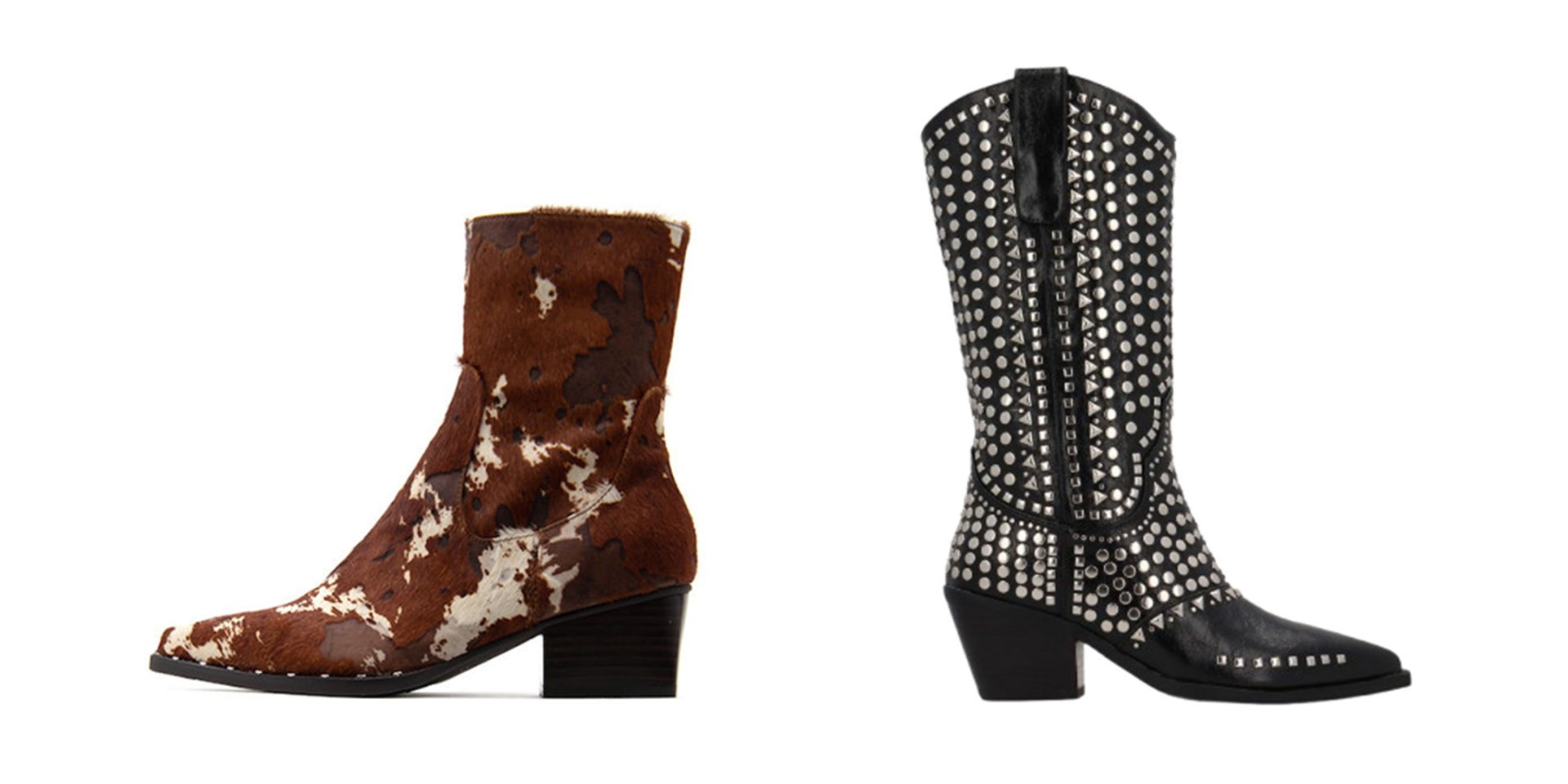 A tradição equina e a estética do Velho Oeste regressam neste Inverno, reinterpretadas de modo contemporâneo: botins com bico apontado, salto bloco ou médio, detalhes como franjas e fivelas. A linha “western” aparece de forma subtil mas marcante nas passarelas para a estação.
