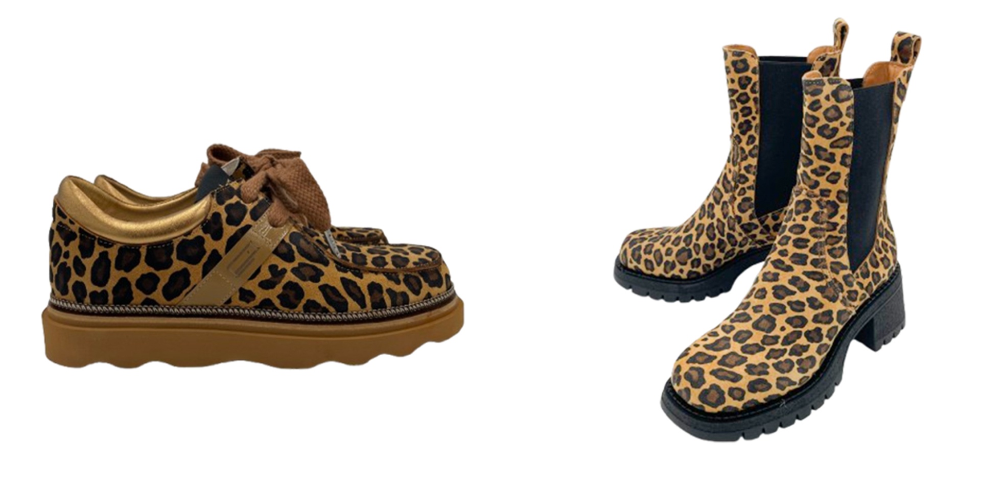 Os estampados inspirados em animais — como pele de cobra, padrão “vaca” ou leopardo — estão em destaque na estação, trazendo textura e personalidade aos modelos de calçado.