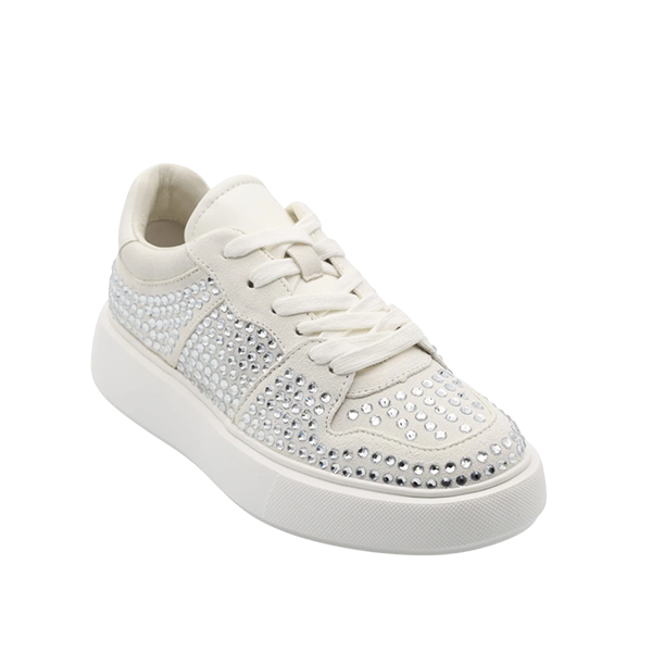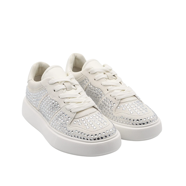 O modelo AMY-74 são umas sapatilas sofisticadas em camurça adornado com brilhos e detalhes metálicos, que conferem estilo e glamour discreto ao visual.