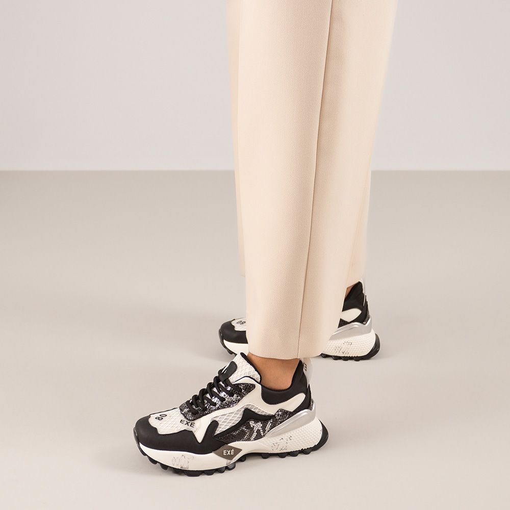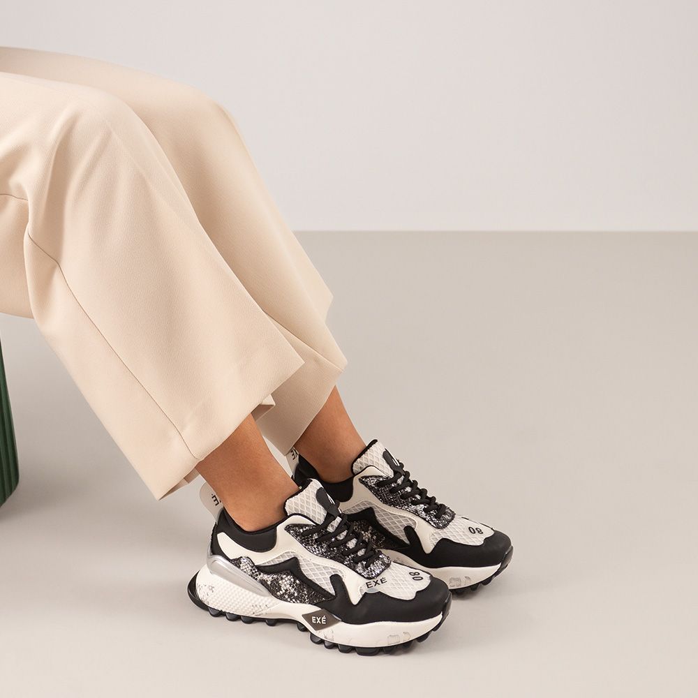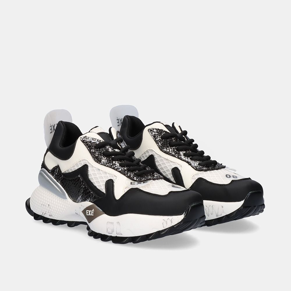 Sapatilhas Exé na cor preto branco.