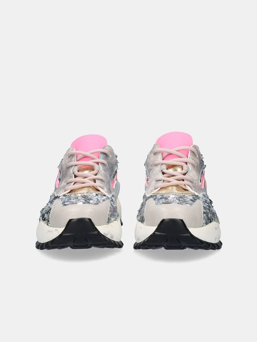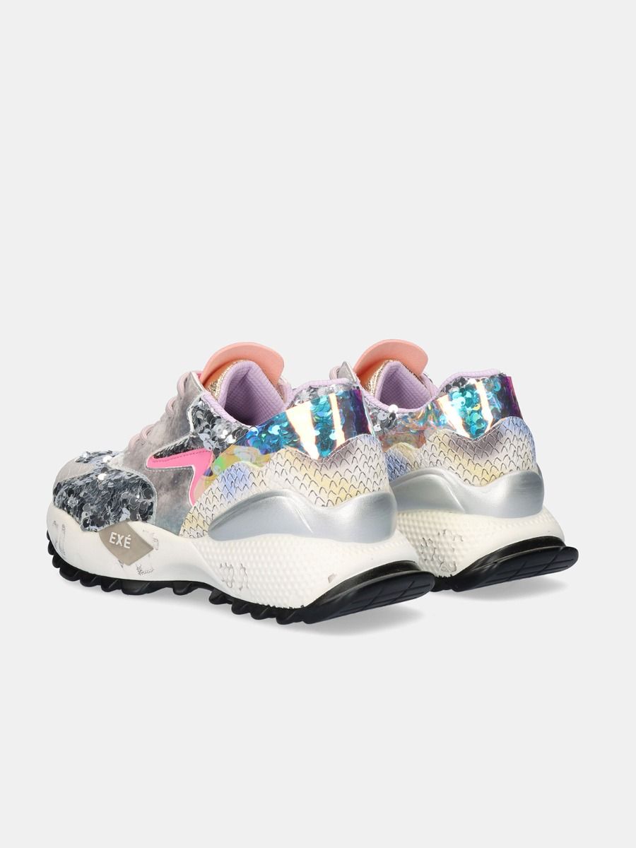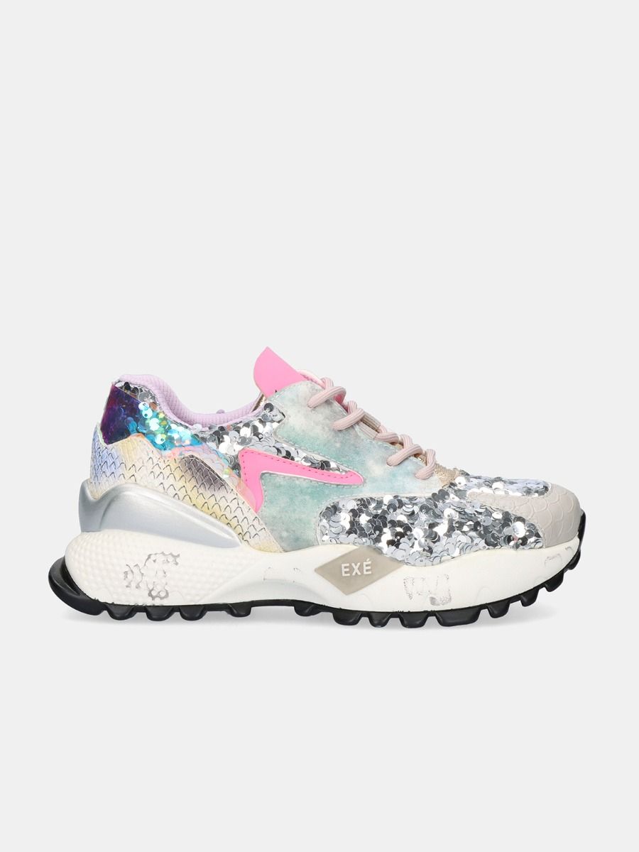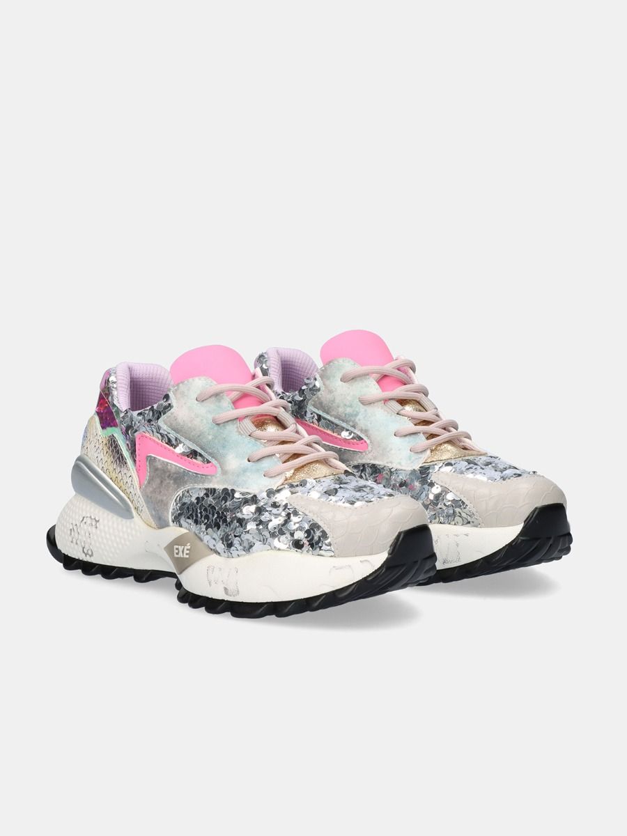 Sapatilhas Exé branco e rosa.
