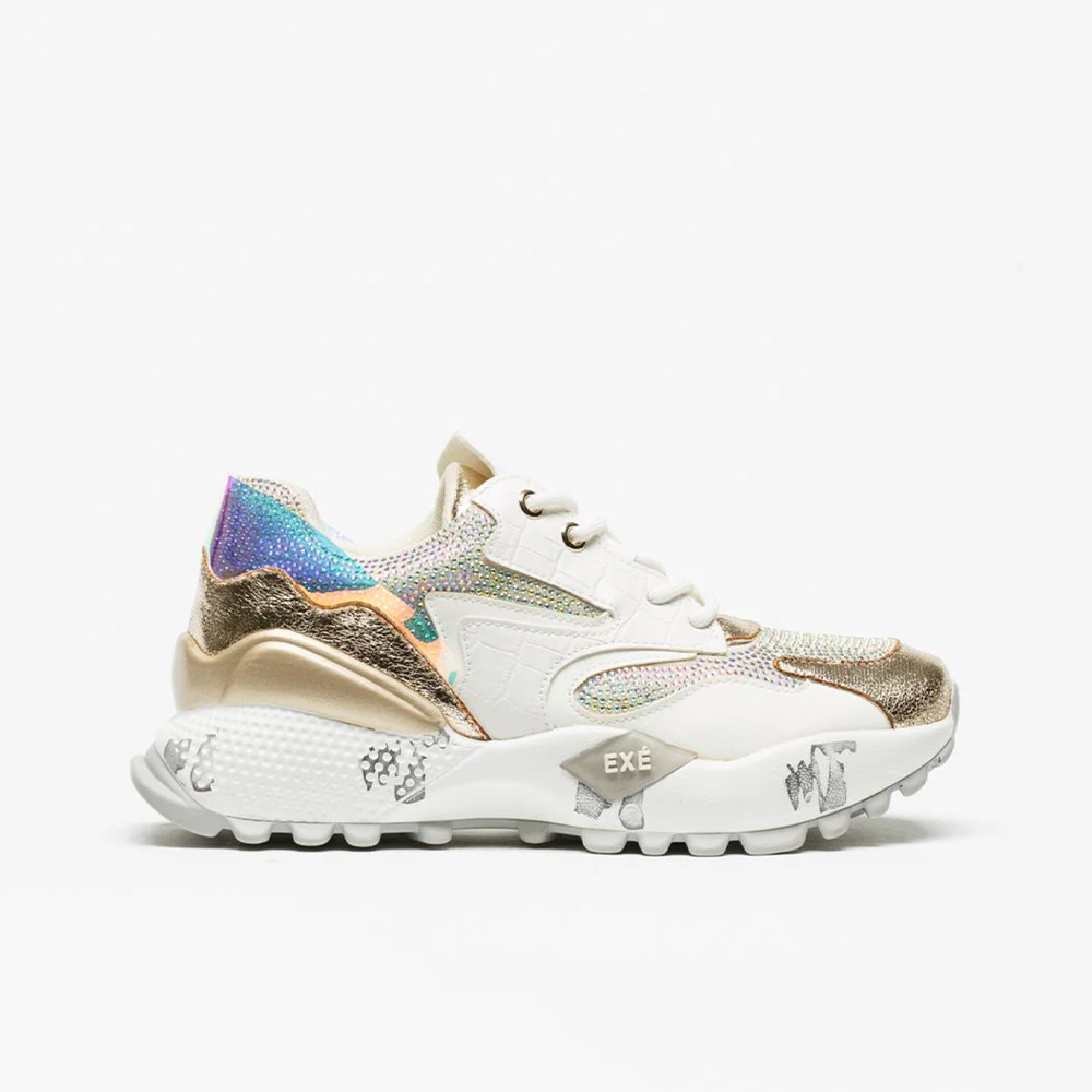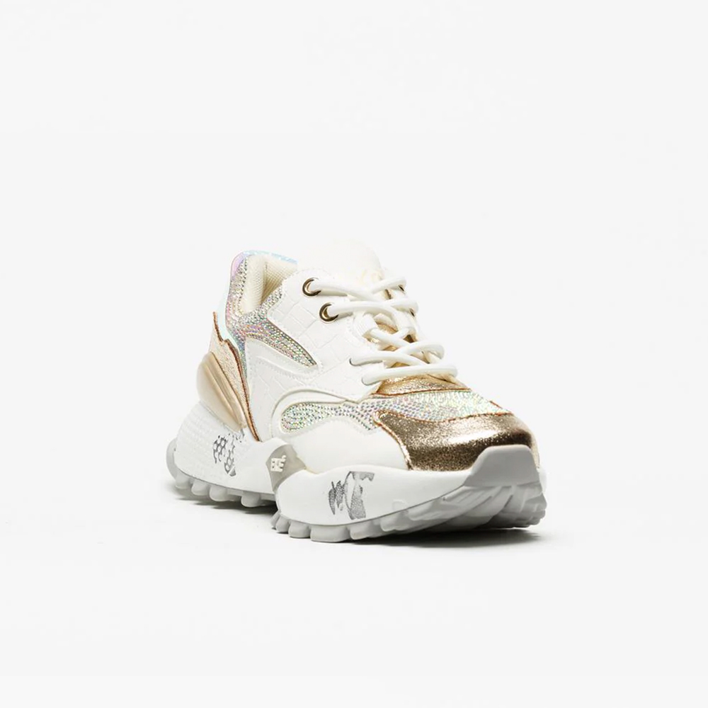 Este modelo tem o seu corte e sola feitos de material sintético. Para maior conforto, tem uma sola de 4 cm de espessura e fecho de renda.