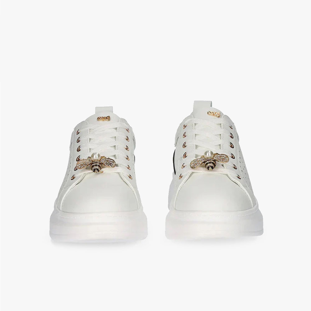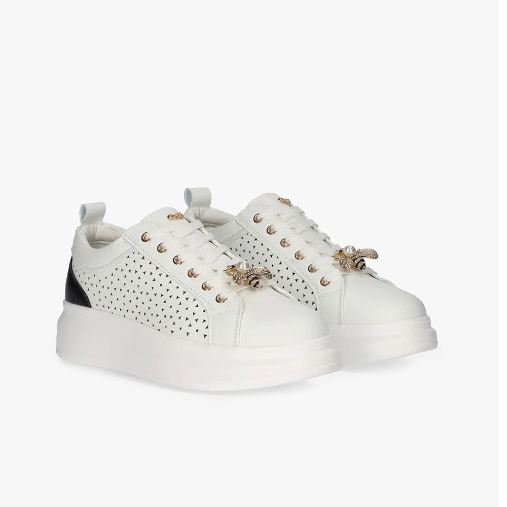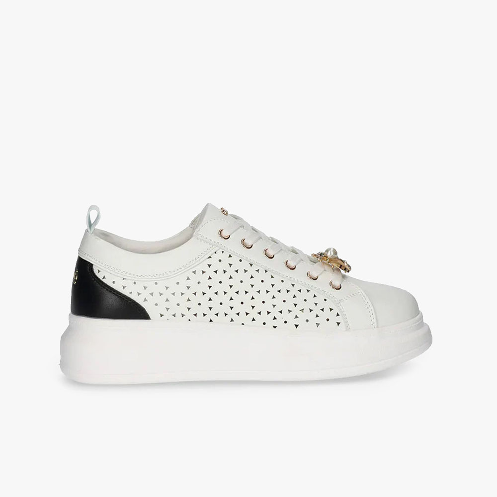 Os atacadores são enriquecidos com uma aplicação decorativa delicada, que confere um apontamento feminino e sofisticado. A sola de plataforma proporciona maior conforto e estabilidade, garantindo uma passada segura e confortável ao longo do dia.