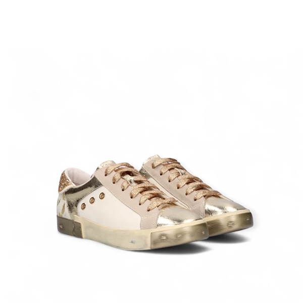 EXÉ :: Sapatilhas D190608-22A WHITE/GOLD Novidades 115,00 € Design sofisticado em tons de branco, enriquecido com detalhes metalizados em dourado Opções