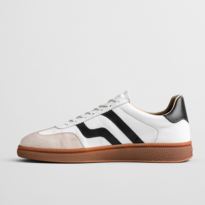 Os ténis Cuzmo são feitos em camurça premium com uma proteção em pele no calcanhar e uma sola baixa em borracha.