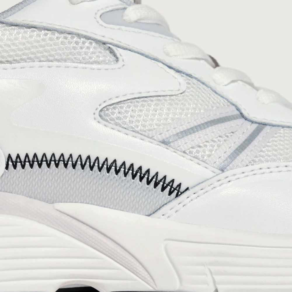 Ténis estilo corrida numa combinação de materiais. Fecho com cadarço. Detalhe do logótipo nas costas.
