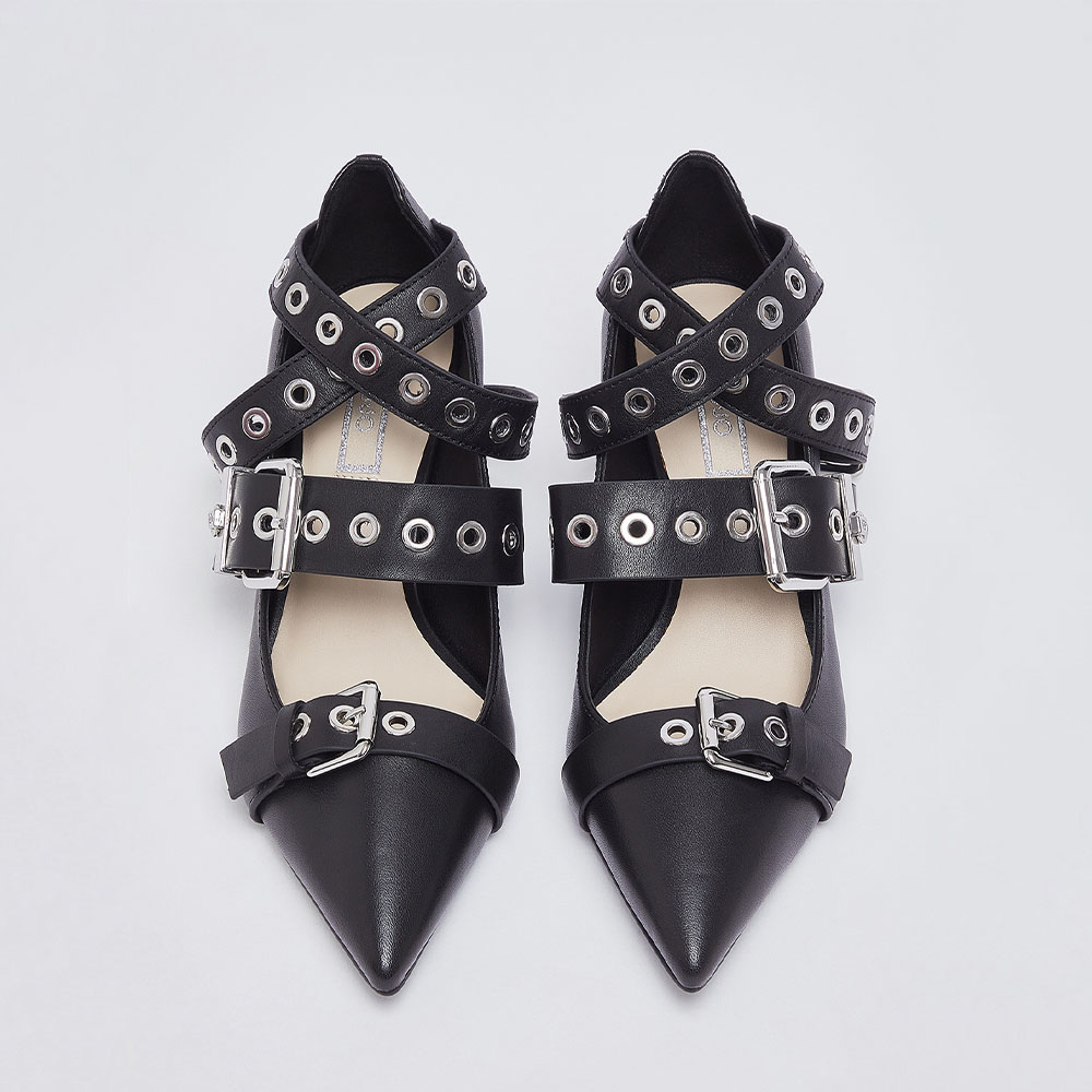 Tiras com ilhós e fivelas decorativas