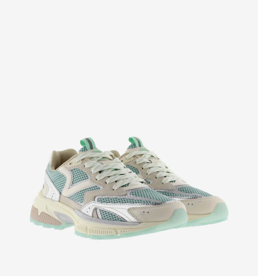 Sapatilhas desportivas para mulher fabricadas em tecido tipo malha com peças em pele e detalhes em PU. Fecho com cadarços brancos com estampado a condizer. Sola de phylon com patim dentado de borracha e estabilizador no calcanhar. Incluem ainda uma palmilha ergonómica que se adapta à forma do pé, proporcionando uma sensação de conforto.